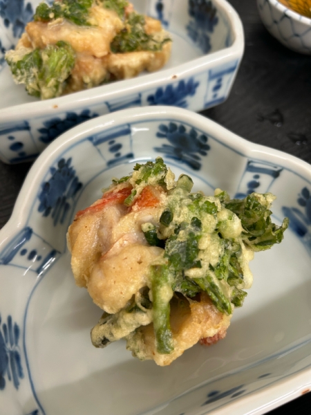 揚げ物は金目鯛とセリのかき揚げ